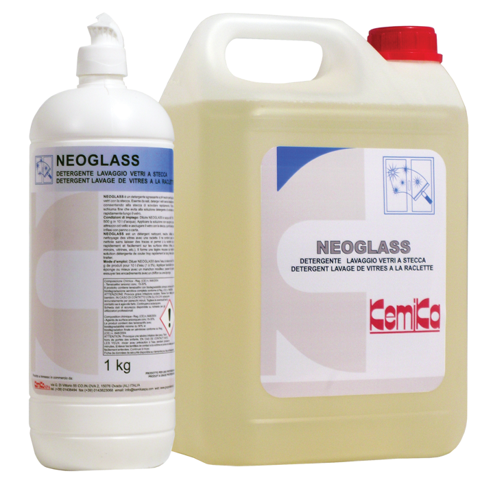 NEOGLASS è un detergente liquido sgrassante a pH neutro per la pulizia professionale dei vetri con stecca. Non lascia residui, facilita lo scorrimento della stecca e produce una schiuma sottile che limita colature. È adatto per applicazione con vello, spugna o panno. Conforme ai criteri di biodegradabilità, è stabile e sicuro se usato correttamente. Leggere la Scheda di Sicurezza prima dell’uso. Prodotto da KEMIKA Spa.