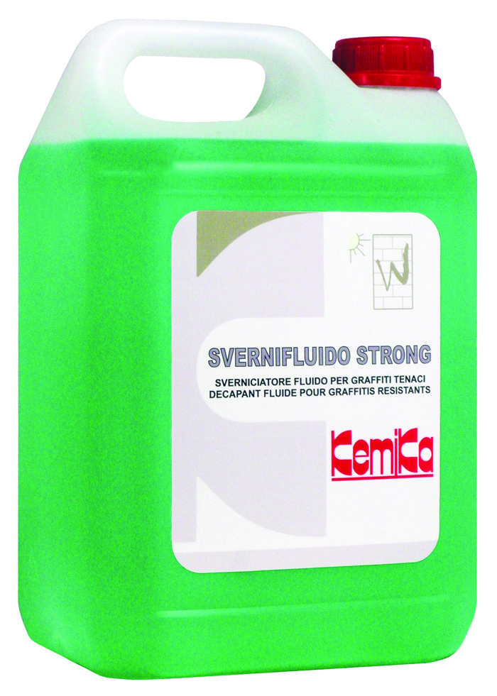 Svernifluido Strong è un sverniciatore fluido professionale in tanica da 5 kg, ideale per la rimozione di graffiti tenaci, vernici, colle e inchiostri. Formulato con solventi sintetici e naturali, include componenti biodegradabili di origine vegetale. Adatto ad applicazioni a spruzzo o pennello, si consiglia test preliminare su superfici sensibili. Uso riservato ad ambienti professionali o industriali.