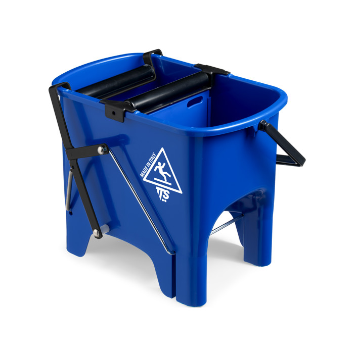 Il Secchio Squizzy Blu da 15 litri è realizzato in moplen riciclato e dotato di rulli senza ruote. Progettato per un utilizzo semi-professionale, include una paratia interna per separare le acque e uno strizzatore a pedale con rulli in gomma che consente di ridurre lo sforzo durante la pulizia. Compatibile con sistemi alette, tasche e mop, offre una soluzione efficiente e funzionale per le esigenze di pulizia quotidiana.