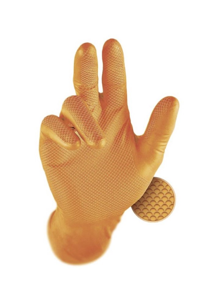 GUANTI USA E GETTA IN NITRILE RINFORZATO GRIPPAZ ORANGE CF 50 PZ.