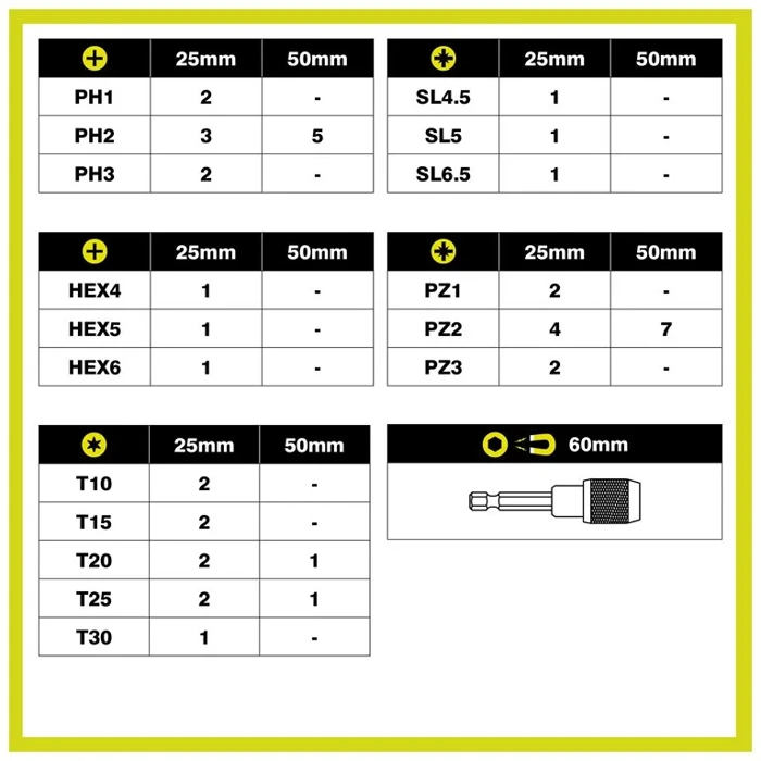 Set inserti Impact RX 45 pz Ryobi RARXSD45 professionale