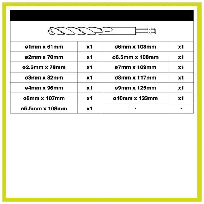 - Set composto da 13 punte specifiche per metallo