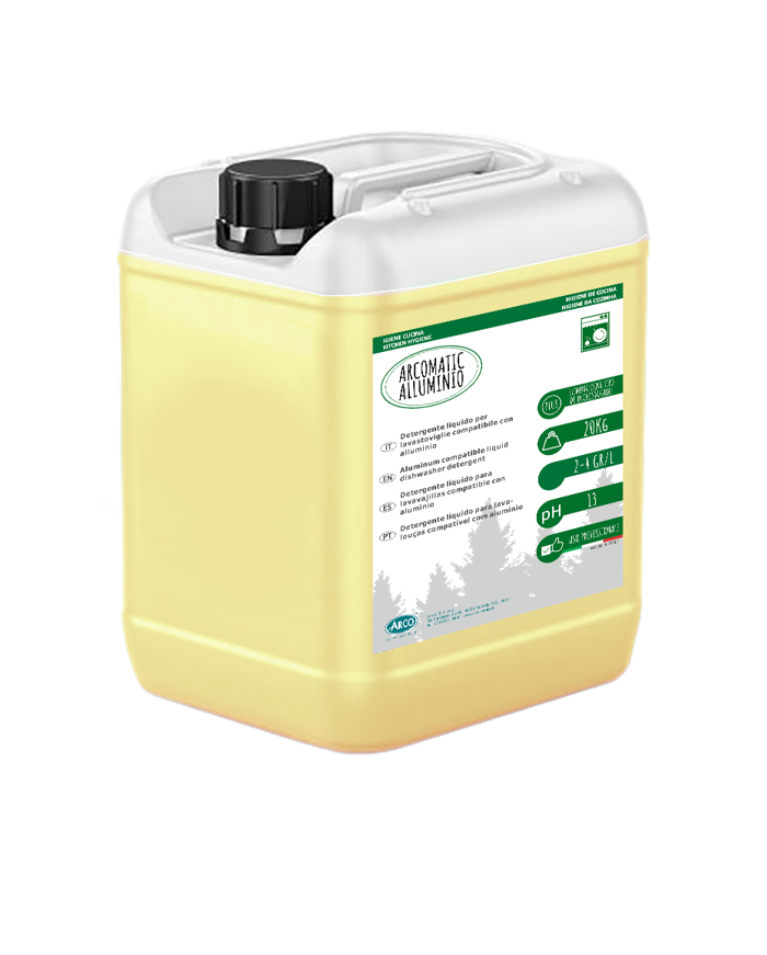 ARCOMATIC ALLUMINIO tanica 20 kg è un detergente professionale per lavastoviglie, indicato per la pulizia di stoviglie e pentolame in alluminio. Privo di cloro, assicura ottimi risultati su ogni durezza dell’acqua. La formula alcalina bilanciata favorisce una detersione efficace e sicura. Utilizzabile sia manualmente che tramite dosatori automatici, è ideale per utilizzi periodici in ambito professionale. Consultare la Scheda di Sicurezza per le modalità d’uso.