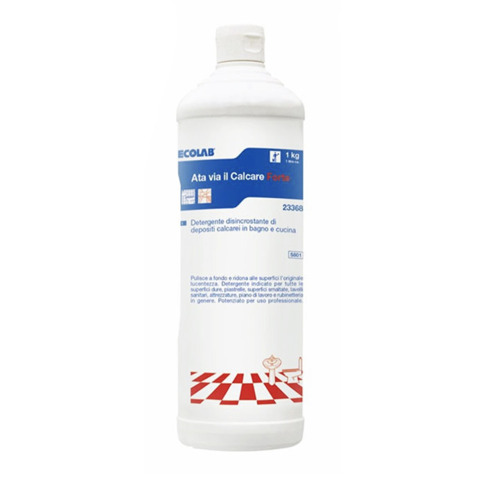 ATA VIA IL CALCARE FORTE è un detergente ad azione energica indicato per la rimozione del calcare e di residui ostinati da superfici resistenti agli acidi. La sua formula, a base di acido fosforico tamponato e tensioattivi, pulisce a fondo lasciando le superfici brillanti. Idoneo per bagni, cucine, piastrelle, acciaio e sanitari. Utilizzare il prodotto pronto all’uso, spruzzare sulla superficie, attendere qualche minuto e risciacquare con attenzione. Destinato esclusivamente all’utenza professionale.