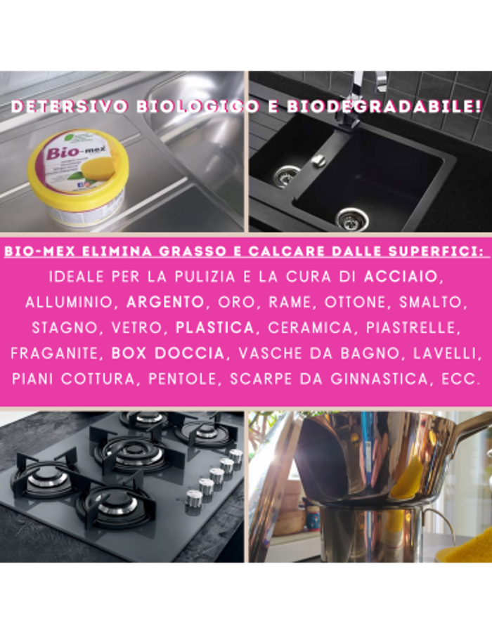 BIOMEX è un detergente universale in panetto adatto alla pulizia di tutte le superfici del bagno. Grazie alla sua formula a base di componenti naturali e biodegradabili, rimuove in modo efficace calcare e grasso garantendo risultati brillanti senza lasciare aloni. Indicato per persone soggette ad allergie, offre sicurezza sia per la famiglia che per l'ambiente. Pratica confezione da 300g completa di spugna.