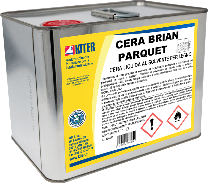 Cera liquida al solvente per parquet e superfici in legno. Garantisce protezione, aspetto caldo e finitura satinata valorizzando le qualità naturali del legno. Facile da ripristinare con lucidatura, non richiede preparazioni elaborate. Indicato per pavimentazioni antiche, mobili o parquet in ambienti umidi. Applicazione professionale, non miscibile in acqua. Offre una barriera efficace contro usura, macchie e sporco. Solo per uso professionale.