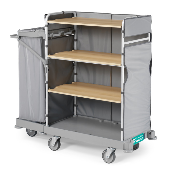 Il Carrello Hotel Serie 920 è pensato per la gestione della biancheria pulita e la raccolta di quella usata allinterno di strutture ricettive come hotel, case di riposo e collettività. Realizzato con schienale in tela plastificata composta da PVC e poliammide, garantisce robustezza e facilità di manutenzione. La struttura è studiata per favorire efficienza e praticità durante le operazioni quotidiane di pulizia e trasporto, rispondendo alle esigenze di igiene e ordine degli ambienti professionali.