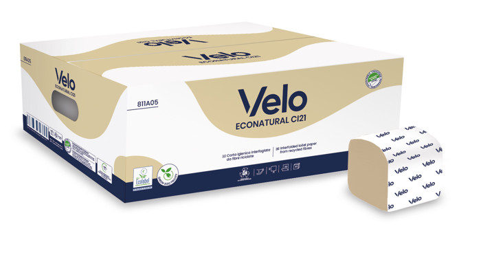 Carta igienica interfogliata realizzata con materiale riciclato dal tetrapack e certificata Ecolabel. Offre un doppio velo resistente e una piacevole sensazione di morbidezza. Grazie al suo colore natural e alla praticità nel prelievo, si adatta perfettamente sia agli ambienti domestici che agli uffici. Confezione contenente 8400 fogli, pensata per uso intensivo e per chi desidera un prodotto che coniughi ecosostenibilità e comfort.