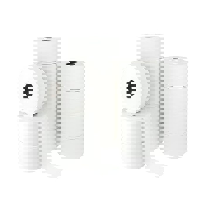 Carta igienica Mini Jumbo in pura cellulosa a 2 veli, ideale per l'utilizzo in appartamenti, spazi lavorativi e ambienti pubblici. Colore bianco, certificazione PEFC per la gestione responsabile delle foreste. Unisce resistenza e morbidezza offrendo un'esperienza d'uso confortevole e pratica nella vita quotidiana. Perfetta per dispenser compatibili con il formato Jumbo.