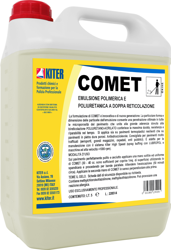 COMET è una finitura acrilica e poliuretanica autolucidante ad alta reticolazione, ideale per pavimenti in aree molto trafficate. Offre una superficie resistente, brillante e antisdrucciolo, facilmente ripristinabile. Idonea per sistemi di manutenzione ad alta o bassissima velocità, riduce l’assorbimento di sporco e facilita le operazioni quotidiane. Pensata per uso professionale, è indicata per pvc, linoleum, marmo, granito e superfici presigillate.