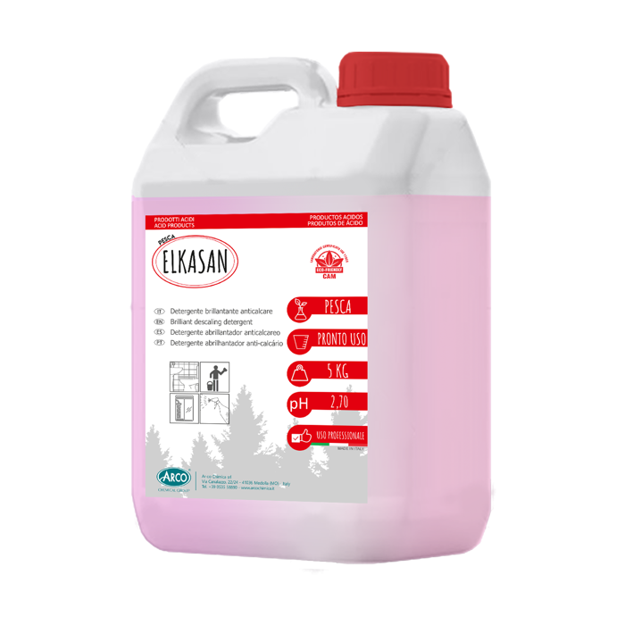 ELKASAN è un manutentore acido brillantante pronto all’uso, ideale per la pulizia quotidiana di lavandini, rubinetterie, sanitari, docce e superfici ceramiche. Formulato con acido citrico, rimuove efficacemente residui calcarei e sapone. Non richiede risciacquo e dona una profumazione duratura. Prodotto autoasciugante, indicato per uso professionale. Disponibile in tanica da 5 kg, profumato alla pesca.