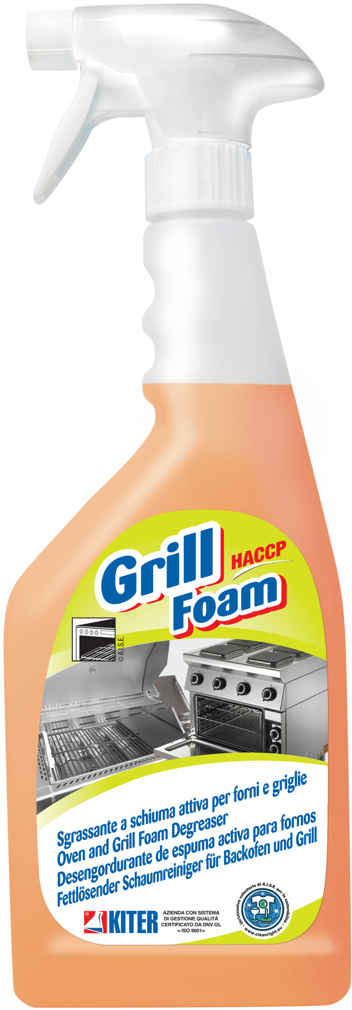 GRILL FOAM è uno sgrassante professionale in schiuma, ideale per rimuovere grassi carbonizzati e incrostazioni da forni, piastre, grill e friggitrici. La formula attiva garantisce ottimi risultati su superfici resistenti agli alcali, anche in presenza di sporco ostinato. Profumato, non cola ed è pratico su superfici verticali. Da utilizzare con dispositivi di protezione. Non indicato su alluminio. Solo per uso professionale.
