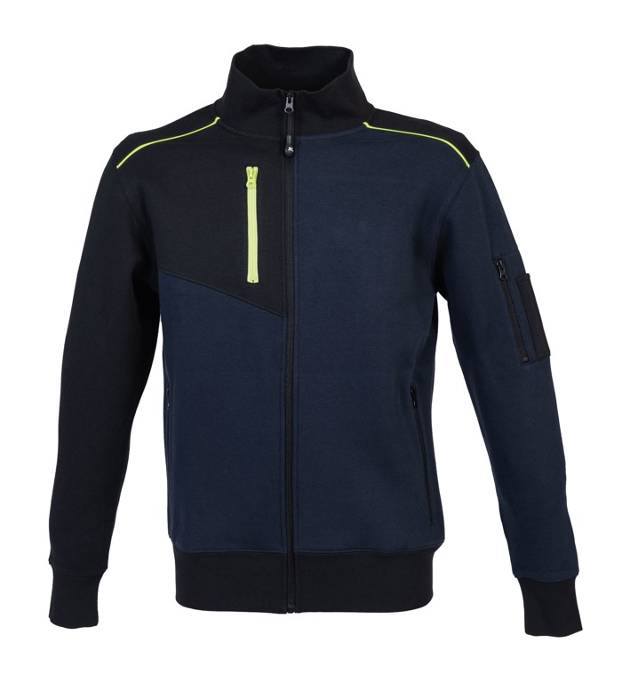 La felpa Indianapolis unisce stile e funzionalità grazie ad una struttura bicolore, un tessuto misto cotone e poliestere e particolari dettagli giallo fluo che la rendono contemporanea. Dotata di collo a lupetto, zip lunga e pratiche tasche con cerniere nastrate, garantisce comfort e resistenza. Ideale per varie attività e professionisti che cercano qualità e comfort quotidiano.