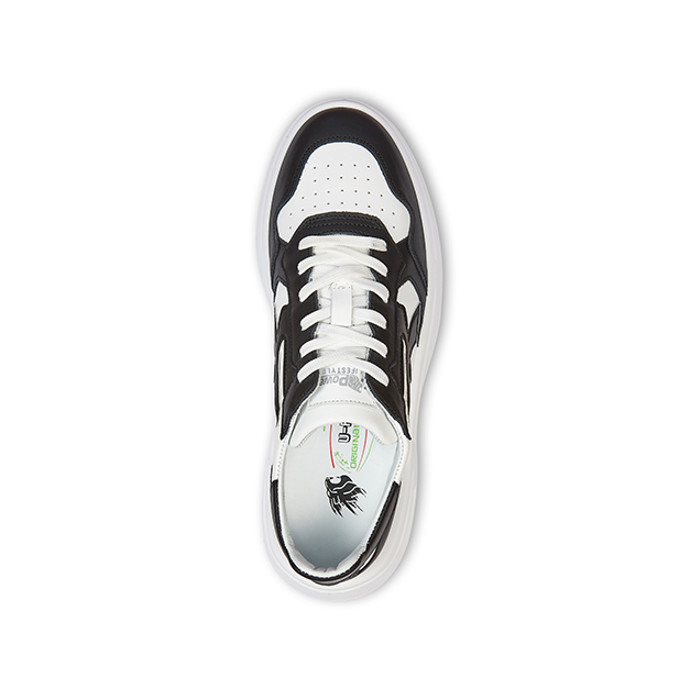 - Tomaia in morbida pelle e dettagli in microfibra nera