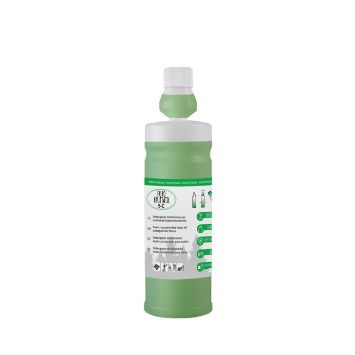 EURO FRUTTATO CONCENTRATO è un detergente professionale profumato, adatto a ogni tipo di pavimento, anche trattato con cera. La formula senza risciacquo, non schiumosa, rende le superfici brillanti e lascia nell’ambiente una piacevole fragranza fruttata. Ideale sia per l’utilizzo manuale che con lavasciuga, garantisce risultati efficaci e un ambiente pulito. Con tappo dosatore da 1 litro per un dosaggio pratico e sicuro.