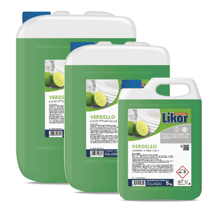 VERDELLO LT.5 è un detergente neutro specifico per il lavaggio manuale di stoviglie e pentolame. Grazie alla sua formula schiumogena ad alta resa, garantisce pulizia efficace e rapida risciacquabilità. Il gradevole profumo di limone elimina i cattivi odori, rendendolo ideale per ambienti professionali gestiti secondo piano HACCP. Da utilizzare esclusivamente per lavaggi manuali, non adatto alle lavastoviglie.