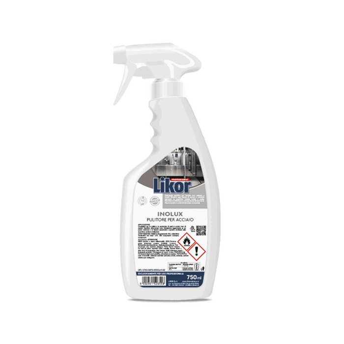 INOLUX è concepito per la pulizia e cura di superfici in acciaio inox. Rimuove sporco, residui grassi e dona brillantezza senza lasciare aloni. Particolarmente indicato per cucine e ambienti industriali, mantiene l’acciaio perfettamente protetto. Raccomandato anche in ambito alimentare e per piani HACCP, si applica facilmente con un panno assorbente per risultati impeccabili.