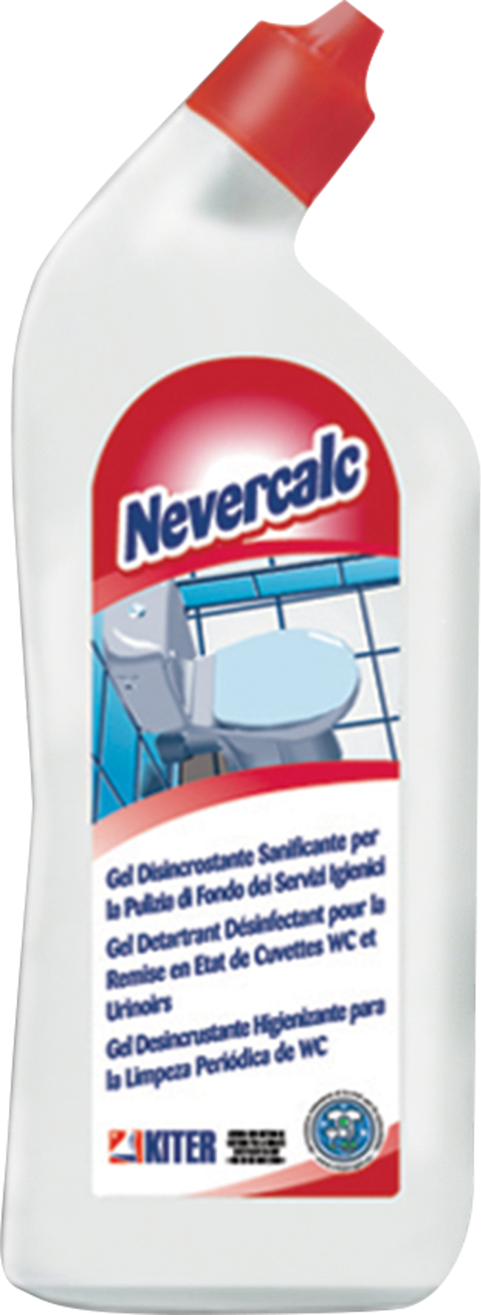 NEVERCALC è un gel disincrostante per WC e orinatoi, ideale per uso professionale. Agisce in profondità su incrostazioni di calcare, ruggine e residui organici, grazie alla formula a base di acido cloridrico e principi attivi sanificanti. Grazie alla sua elevata viscosità aderisce alle superfici garantendo un’azione duratura. Dona igiene, deodora e semplifica la pulizia dei servizi igienici. Utilizzare seguendo le precauzioni indicate.