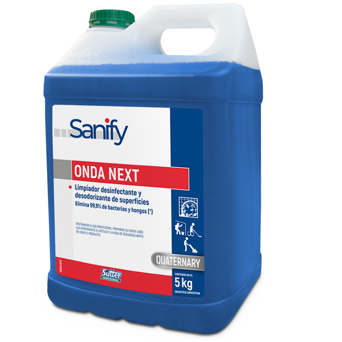 ONDA NEXT è un detergente disinfettante profumato per superfici dure, in tanica da 5L, formulato per uso professionale. Elimina fino al 99,9% di batteri, lieviti e funghi, agisce anche contro i virus con involucro e rispetta i limiti HACCP. Indicato per ambienti sanitari, ristorazione e comunità. Profumazione pino mentolato, ottimo effetto deodorante. Utilizzare seguendo indicazioni di sicurezza e diluizione in etichetta.
