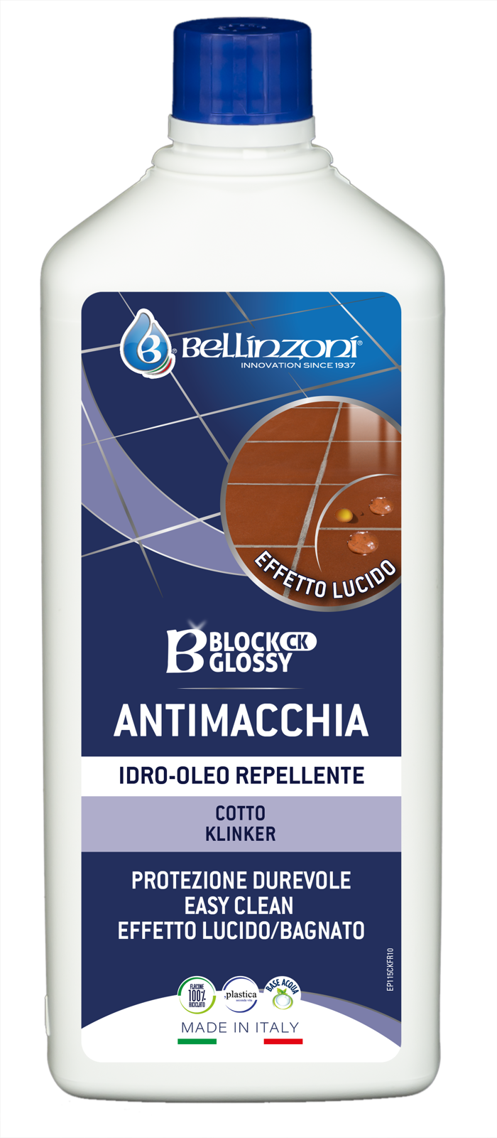 B-BLOCK GLOSSY CK LT.1 è un protettivo idro e oleorepellente per cotto e klinker, ideale per uso professionale e domestico. Dona alle superfici un aspetto lucido e migliora la resistenza contro olio, caffè e altre macchie, facilitando le operazioni di pulizia quotidiana. La sua formula a basso contenuto di VOC è adatta anche ad ambienti chiusi, lasciando la superficie protetta e con un effetto bagnato duraturo. Calpestabile dopo 6-8 ore, garantisce una protezione prolungata. Si applica facilmente su superfici pulite, asciutte e senza polvere, utilizzando panno, rullo o pennello.