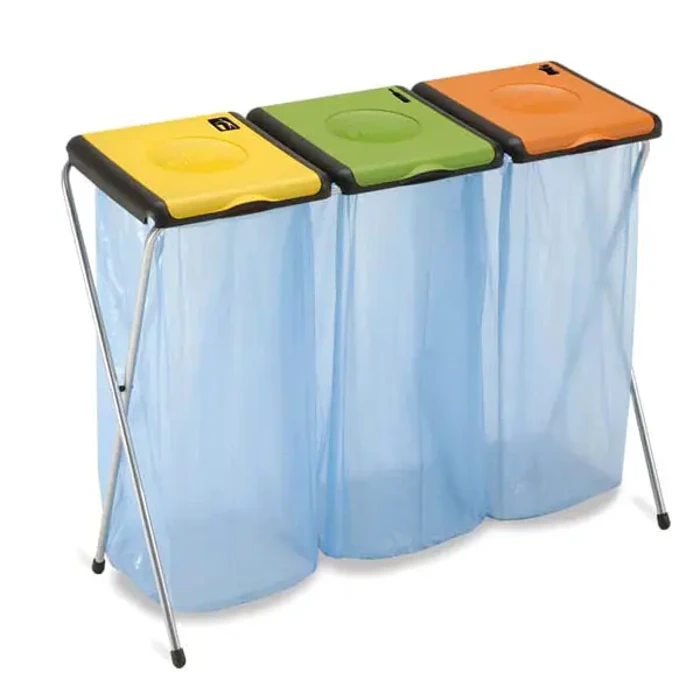 La Pattumiera Differenziata Portasacco Nature 3 di Gimi offre una soluzione pratica e resistente per la raccolta dei rifiuti. Realizzata in acciaio pieghevole con coperchi in resina di tre diversi colori, si adatta facilmente a ogni ambiente grazie alle dimensioni generose ma compatte. Progettata con tre distinti vani portaborse, facilita la gestione differenziata e contribuisce all ordine e alla pulizia di spazi domestici o lavorativi.