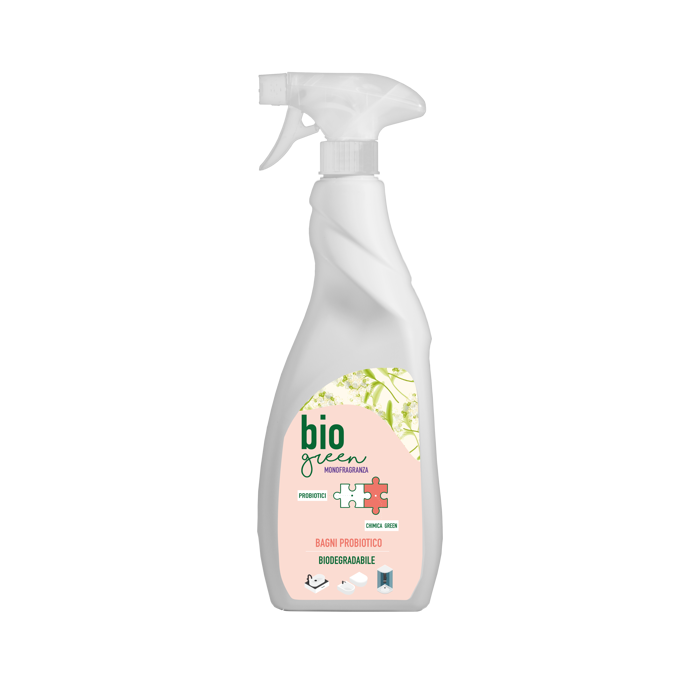 Bio Green Probiotico Bagno è il detergente anticalcare ideale per la pulizia quotidiana di sanitari in ceramica, box doccia, rubinetterie e lavelli in acciaio. La sua formula a base di probiotici e tensioattivi vegetali rimuove efficacemente calcare e sporco, dona brillantezza alle superfici e contribuisce a neutralizzare i cattivi odori. Pronto all’uso, lascia una gradevole fragranza floreale. Per uso professionale. Formato: flacone da 750 ml.