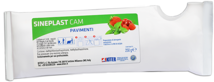 SINEPLAST CAM è il detergente concentrato in minibag da 250g ideale per la preparazione di soluzioni da 5 litri. Studiato per la pulizia quotidiana di pavimenti in PVC, linoleum, pietra e marmo, dona brillantezza e profuma gli ambienti con una nota di frutti rossi e menta. Non lascia residui né necessita risciacquo, garantendo praticità e risultati ottimali. Adatto per uso professionale, si scioglie completamente in acqua nel rispetto degli standard ambientali.