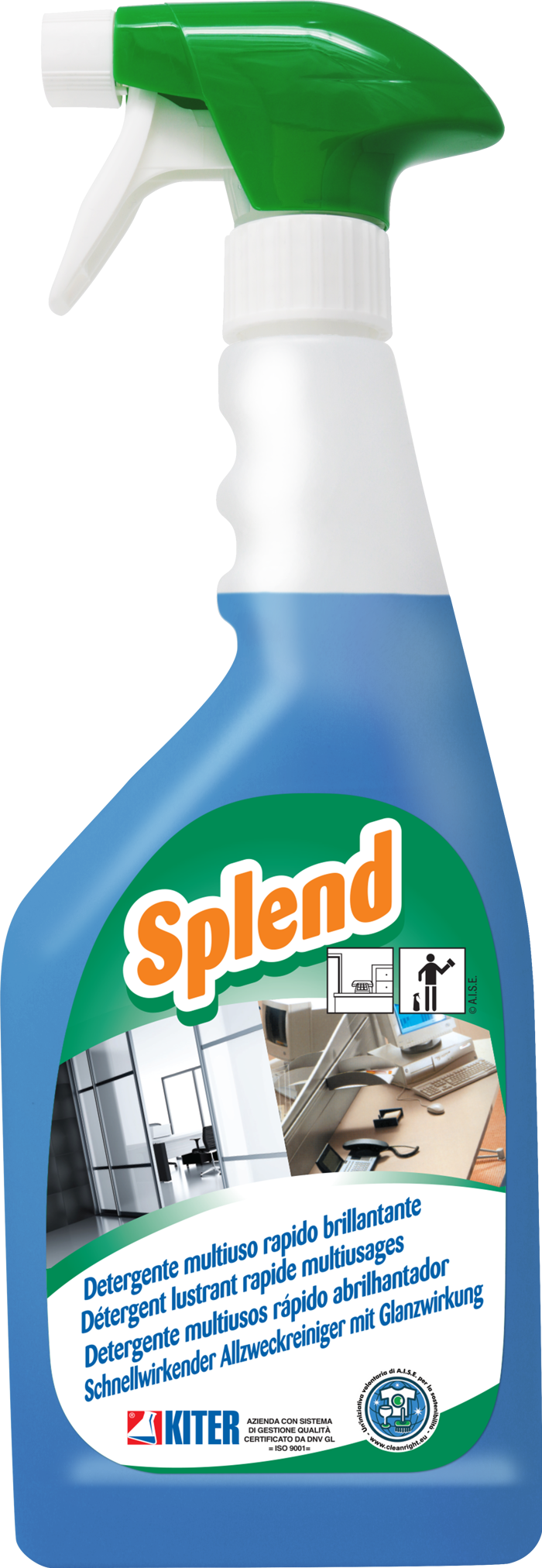 SPLEND 750 ml è un detergente multiuso neutro pronto all’uso, ideale per la pulizia quotidiana di arredi, vetri, infissi, telefoni, computer, laminati e tutte le superfici lavabili. Garantisce una pulizia rapida senza necessità di risciacquo, non lascia aloni e diffonde una piacevole fragranza floreale. Adatto esclusivamente a un impiego professionale, rispetta i requisiti di biodegradabilità e non è classificato come pericoloso.