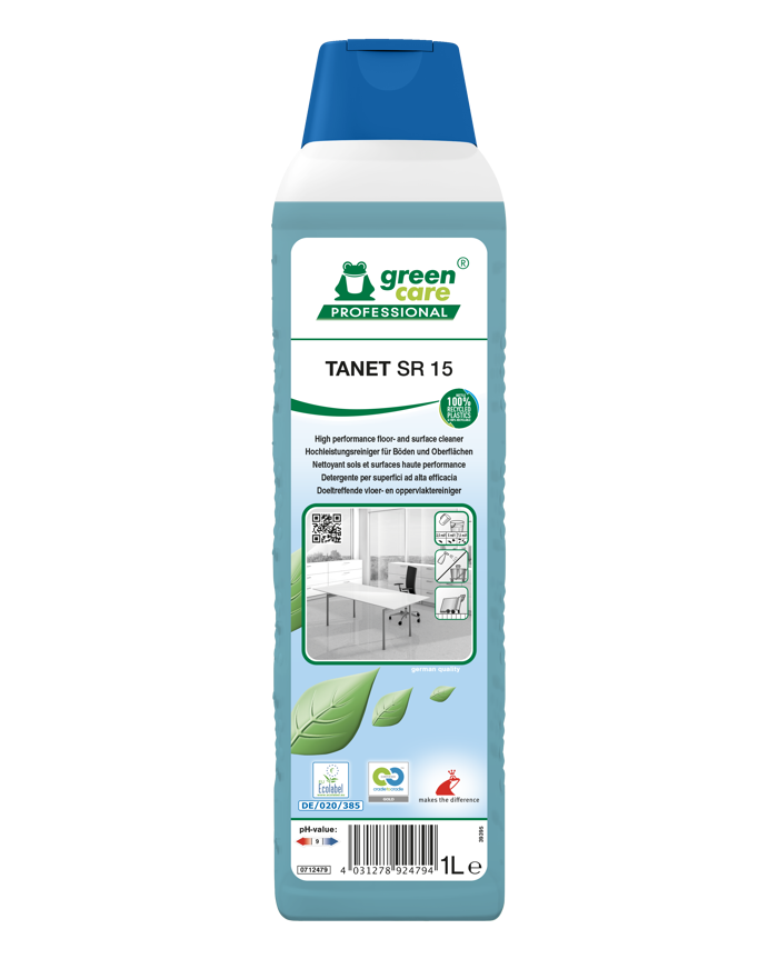 TANET SR 15 è un detergente professionale a base alcolica, specifico per la manutenzione ordinaria di pavimenti e superfici. Garantisce elevate prestazioni anche a basse dosi, rimuovendo rapidamente sporco, grasso e residui da materiali idrorepellenti senza lasciare aloni. Il prodotto è sicuro per l'ambiente e per l'operatore, grazie alla formula con ingredienti da fonti vegetali rinnovabili. Idoneo per l'uso con macchine lavasciuga.