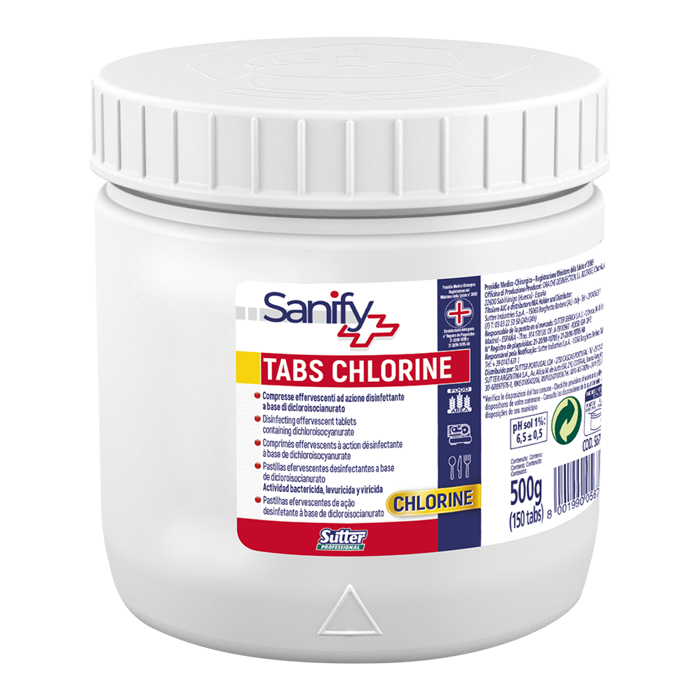 TABS CHLORINE GR.500 sono pastiglie effervescenti ideali per la sanificazione di superfici, pavimenti e attrezzature in ambienti professionali quali cucine, ospedali, industrie alimentari e comunità. La formula a base di diclorisocianurato assicura un'azione disinfettante rapida. Ogni compressa sviluppa acido ipocloroso a contatto con l’acqua e garantisce efficacia anche contro virus e batteri. Dopo l’uso, risciacquare accuratamente le superfici.